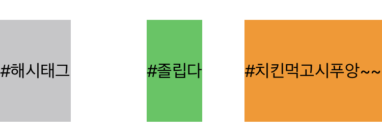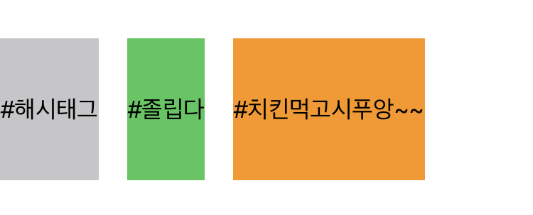 아래의 이미지는 가장 긴 #치킨먹고시푸앙~~ 의 길이로 통일되었는데 디바이스의 크기때문에 짤린 모습이네요.