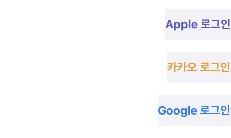 만약 아래와 같이 SNS로그인이 애플/카카오/구글이 있다고 가정해보죠.