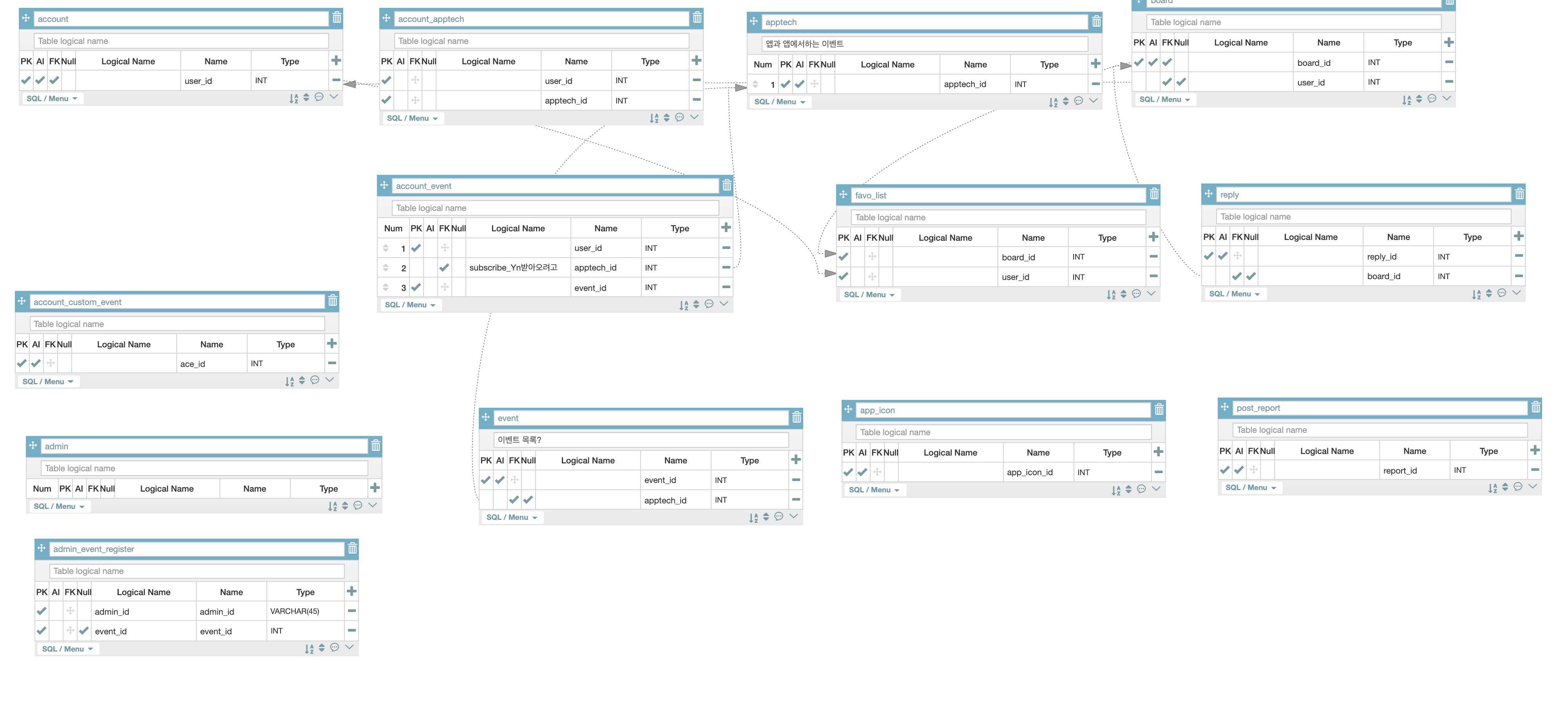 처음에 5개였던 테이블이 13개로 증식되었다... 이게 무슨 일..?