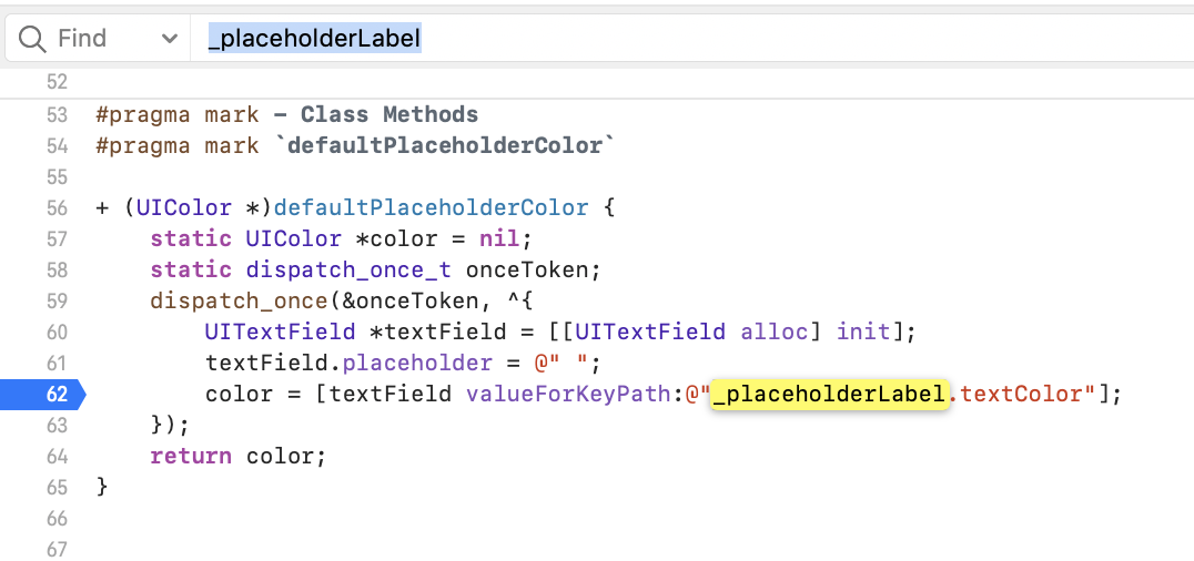 찾았다. 소스를 보아하니 UITextField의 Placeholder 색을 얻으려고 하는 코드구나.
